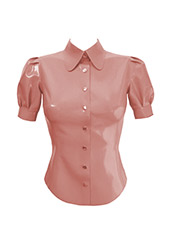 Plain Short Sleeve Blouse w/ Kitty Collar in Supatex Light Brown