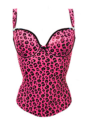 Printed Wonder Cup Top w/ Single Trim Bra Cups in Vibrant Bright Pink Leopard / Supatex Black