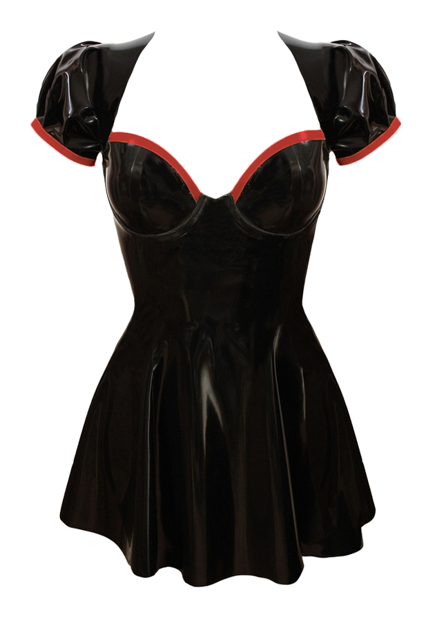 Plain Nurses Flare Dress w/ Single Trim in Black / Red