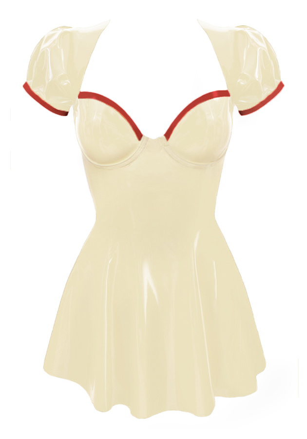 Plain Nurses Flare Dress w/ Single Trim in White / Red