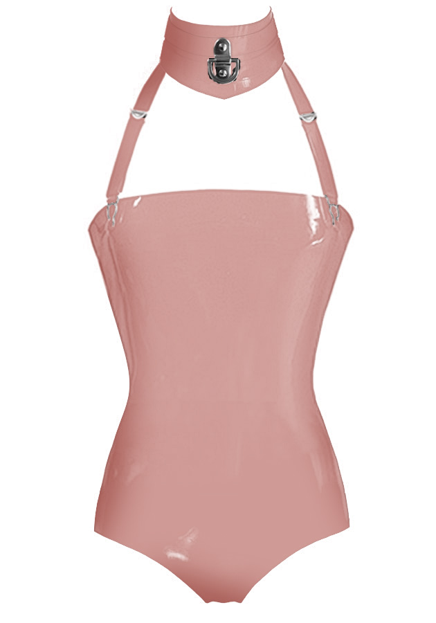 Plain Restricted Strapless Body w/ D-ring Collar and 4 Adjustable Suspenders / Mid Cut Leg in Supatex Light Brown