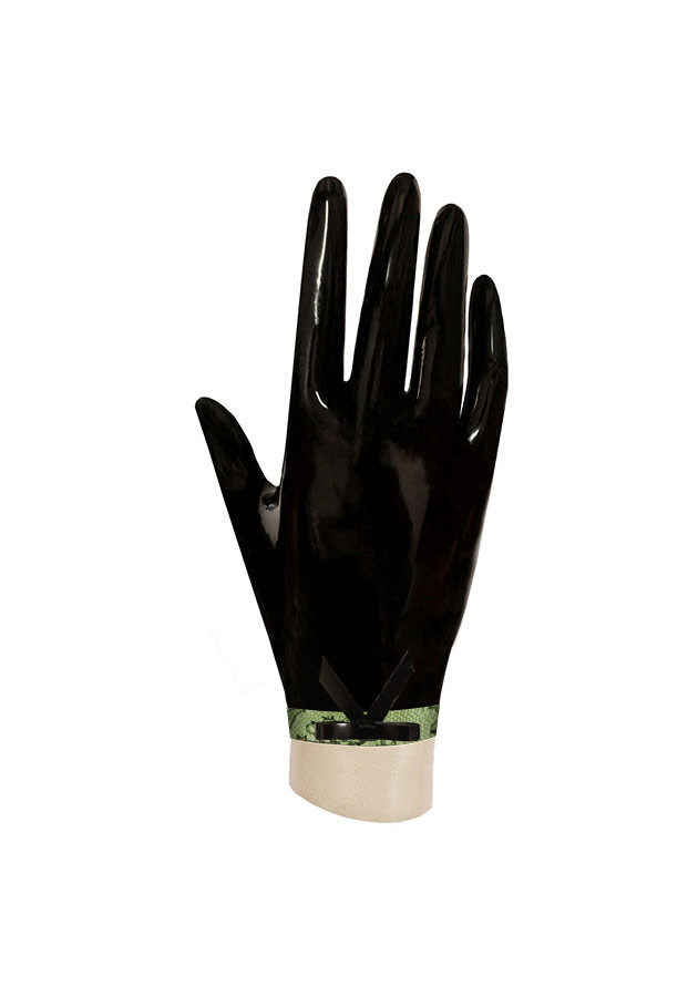 Plain Moulded Wrist Gloves w/ Single Trim / Bow in Supatex Black / Pearlsheen Leaf Green Lace