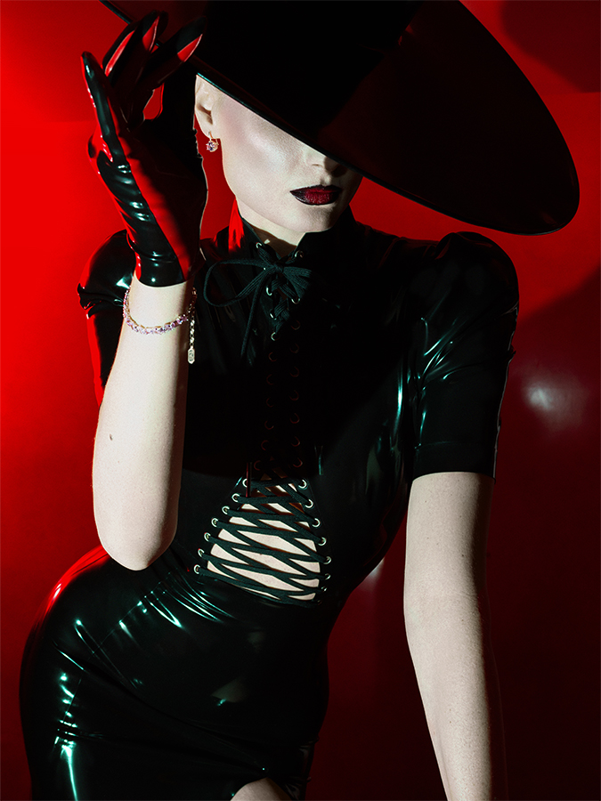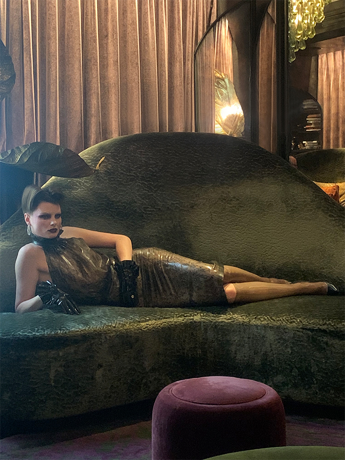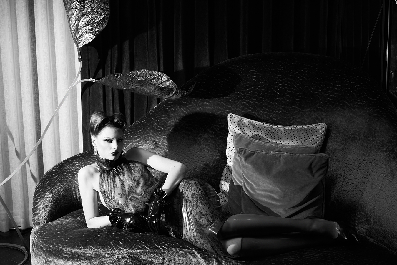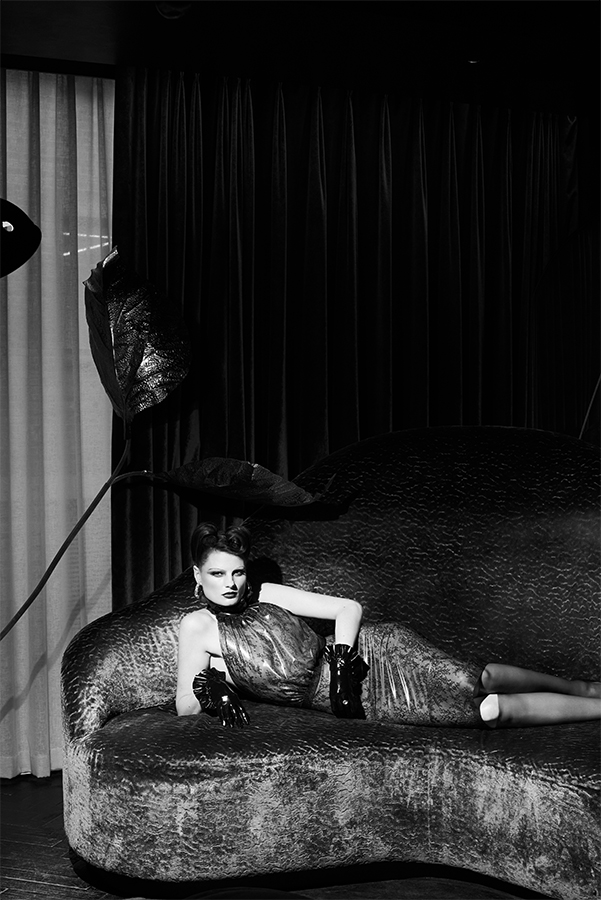 Shot at the luxurious, eclectic and truly amazing Mandrake Hotel in London’s Fitzrovia, the Mandrake provided the perfect setting for the noir elegance of Atsuko’s latest designs.
