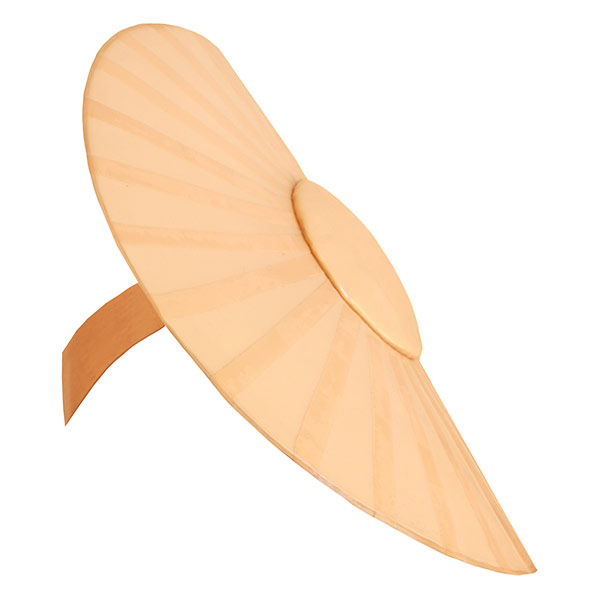 The Alejandra hat features pleat appliqué over a circular construct with a central disc and designed to gentle curve over the side of your head.