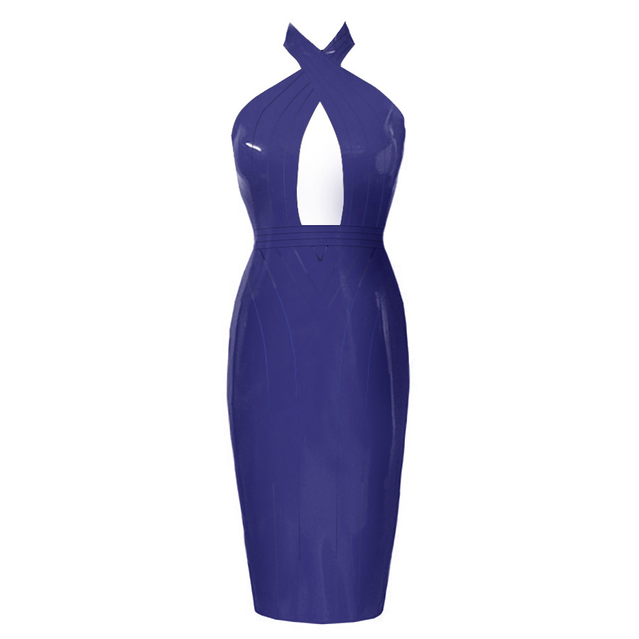 A beautiful cross front halter neck pencil dress with subtle, sleek detail lines and super flattering shaping.