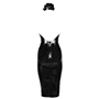The Drama frill dress is a timeless piece with a beautifully ruffled collar and ruched halter neck. It also features an open back and a sleek pencil skirt.