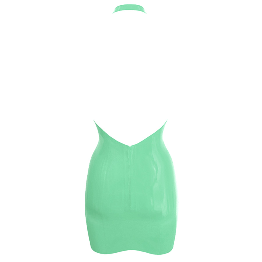 At the rear the dress is cut away seductively. A version with long adjustable suspender straps is also available.