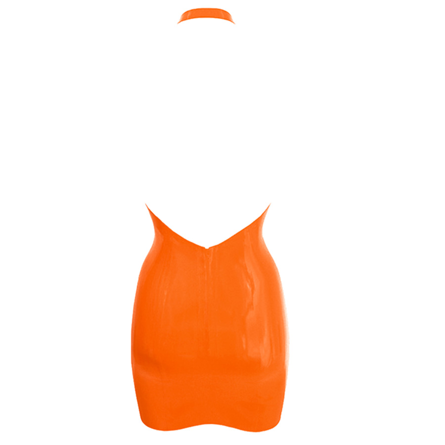 At the rear the dress is cut away seductively. A version with long adjustable suspender straps is also available.