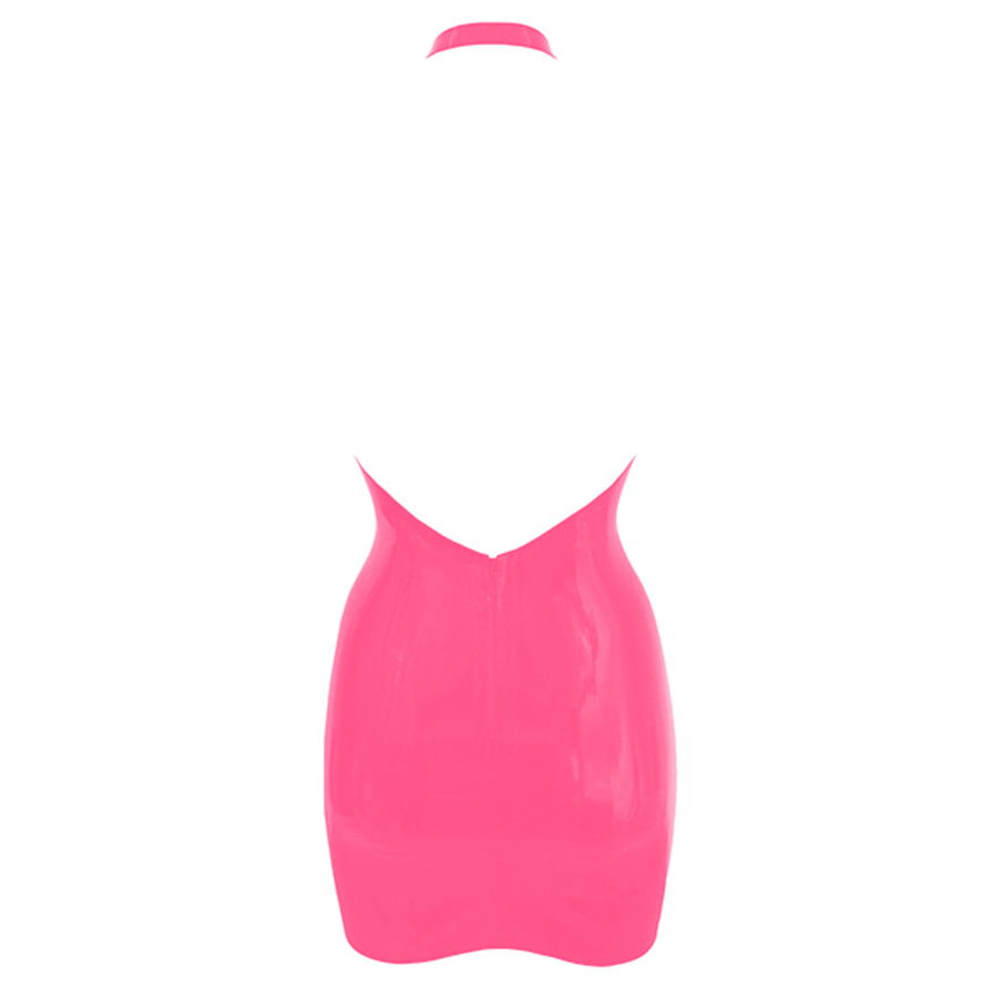 At the rear the dress is cut away seductively. A version with long adjustable suspender straps is also available.