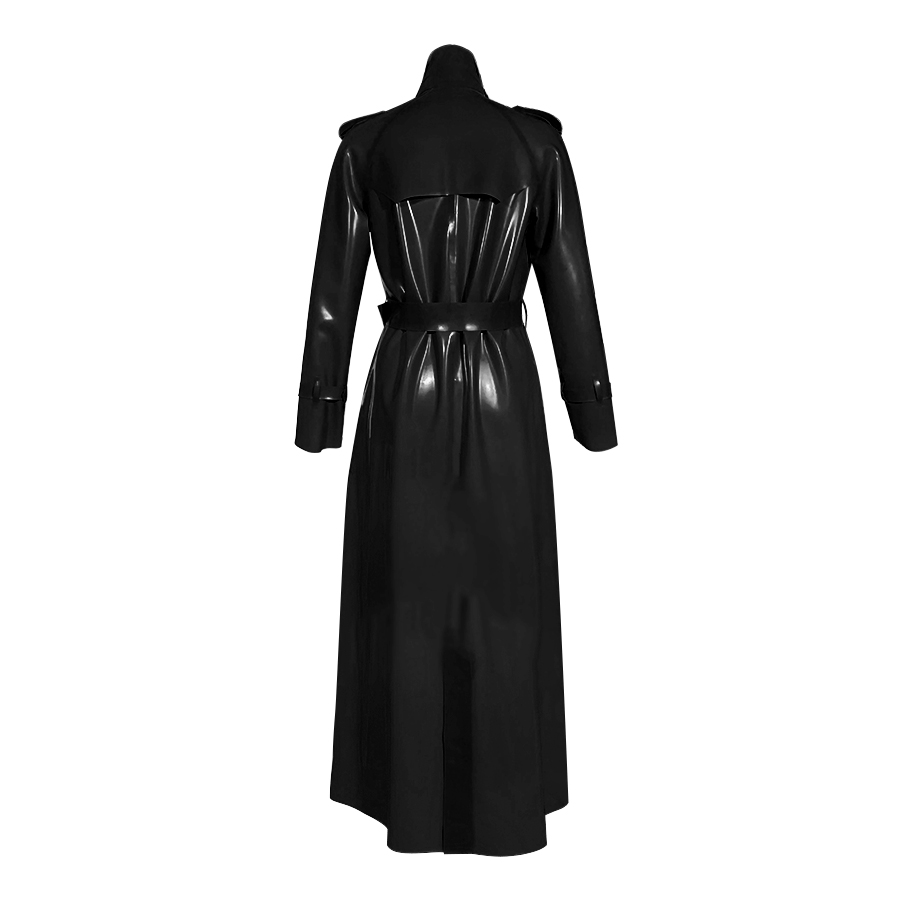 This stunning trench coat has all the features of the classic design - rendered in latex.