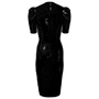 This beautiful classic dress features a short v shaped neckline which is complimented by flattering mid length fitted puffed sleeves.