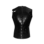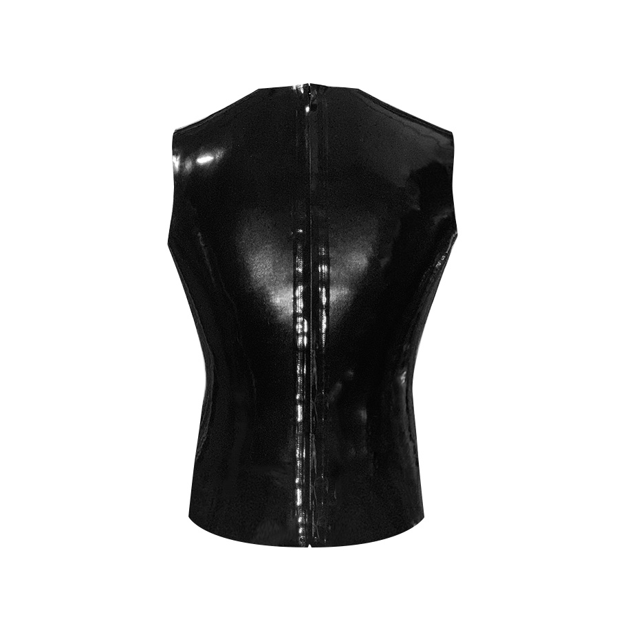 A deceptively simple vest featuring beautifully cut, sleek lines designed to accentuate the shape of the male torso.