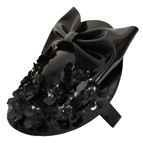 To create additional awe the lower half of the hat is delicately dotted with stunning dahlia flower appliqué each sparkling at the centre with diamante detail.