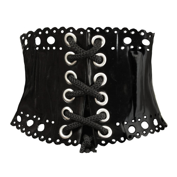 The corset is carefully constructed with boning to give an eye catching look as well as support. It fits at the back with adjustable lacing.