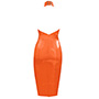 It fastens with two poppers at the back of the neck and a hidden rear zip, making this a virtually backless dress. It also features a rear split in the skirt.