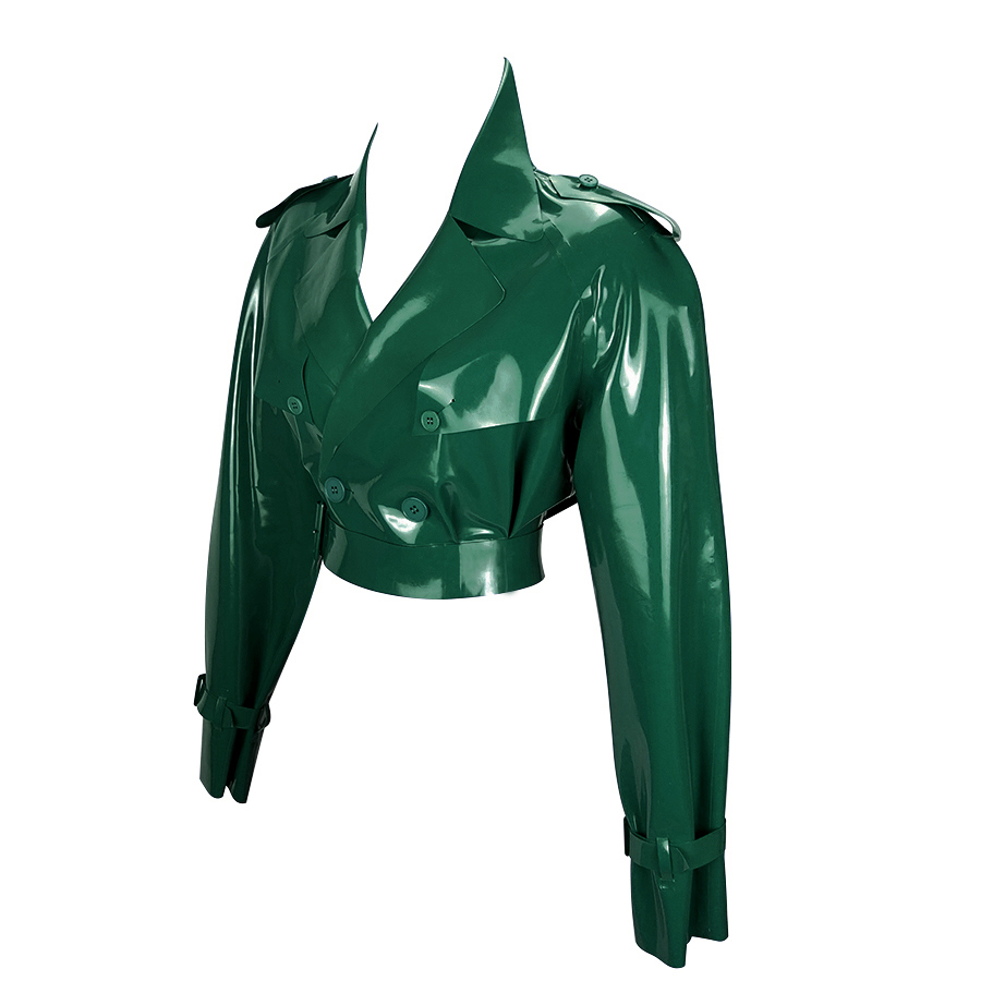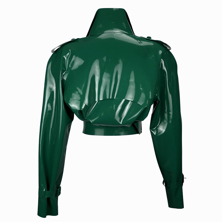We now offer an option to colour match the buttons and buckles on the trench jacket as shown here in dark green - please email for other colour options and a quote for this service.