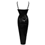 The dress sits at ankle length. It has fully adjustable shoulder straps and fastens with a zip to the rear.