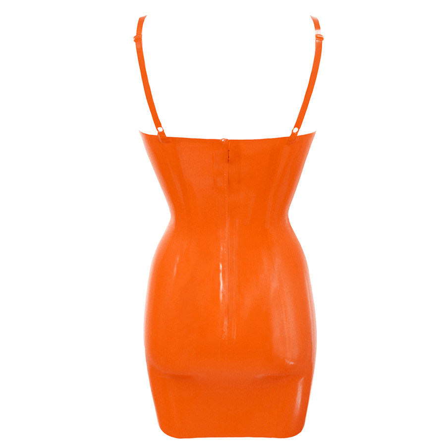 The dress has a gentle curve on the hem, fully adjustable shoulder straps and fastens mid back height with a zip.