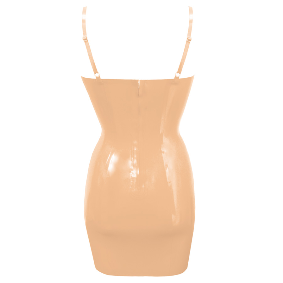 The dress has a gentle curve on the hem, fully adjustable shoulder straps and fastens mid back height with a zip.
