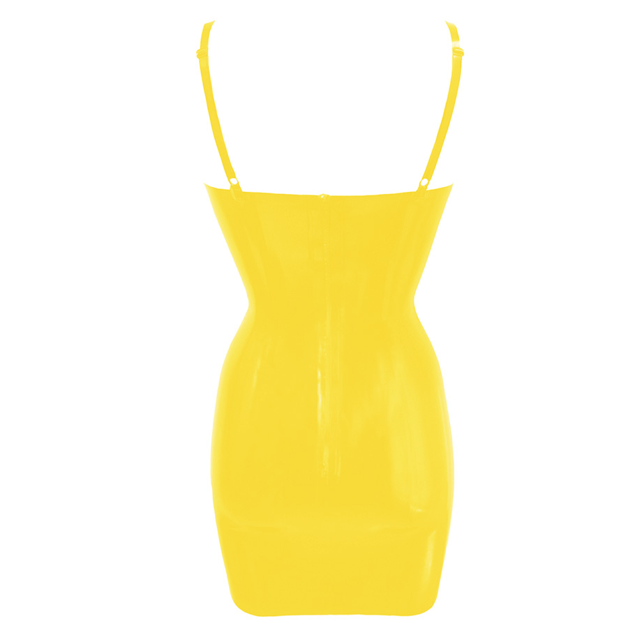 The dress has a gentle curve on the hem, fully adjustable shoulder straps and fastens mid back height with a zip.