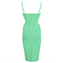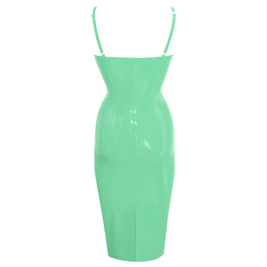The dress sits at knee length and has a split at the centre back for ease of movement. It has fully adjustable shoulder straps and fastens with a zip to the rear.