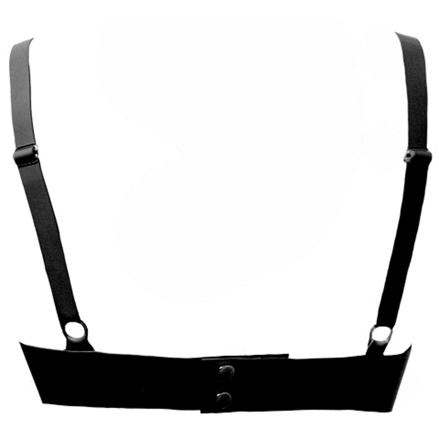 It has fully adjustable shoulder straps and fastens at the rear with poppers.