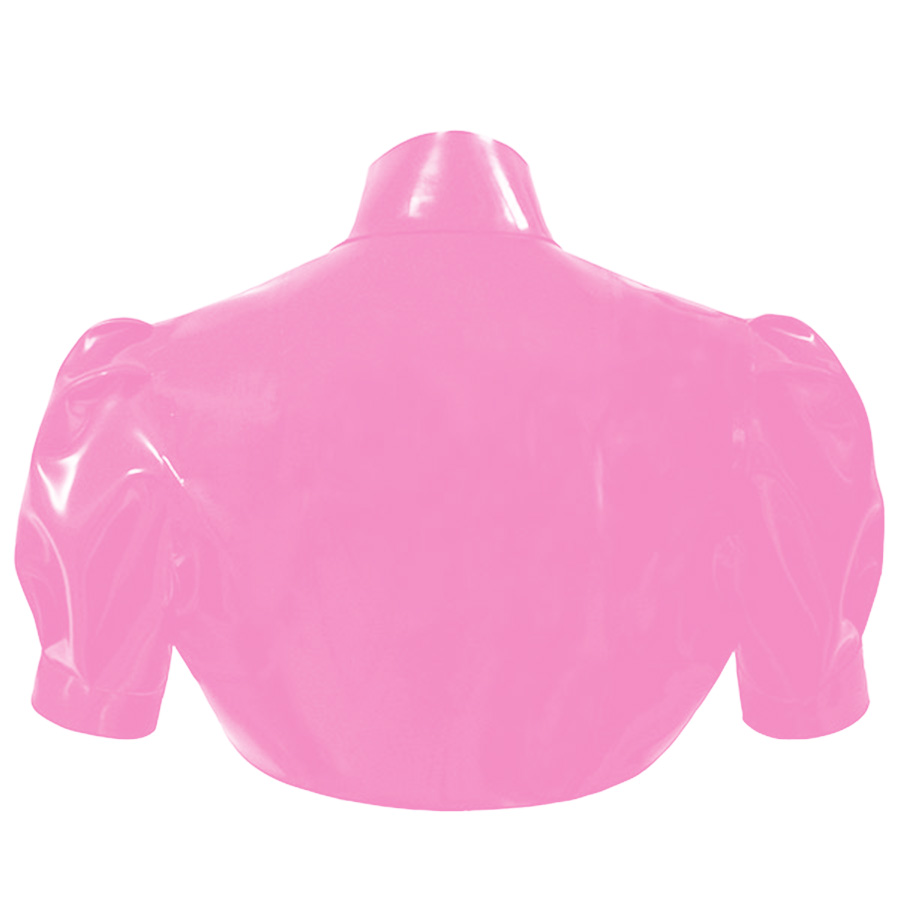 Our mini jacket has a high neck mandarin shaped collar that sweeps around the sides of the chest before curving fully around the upper back.