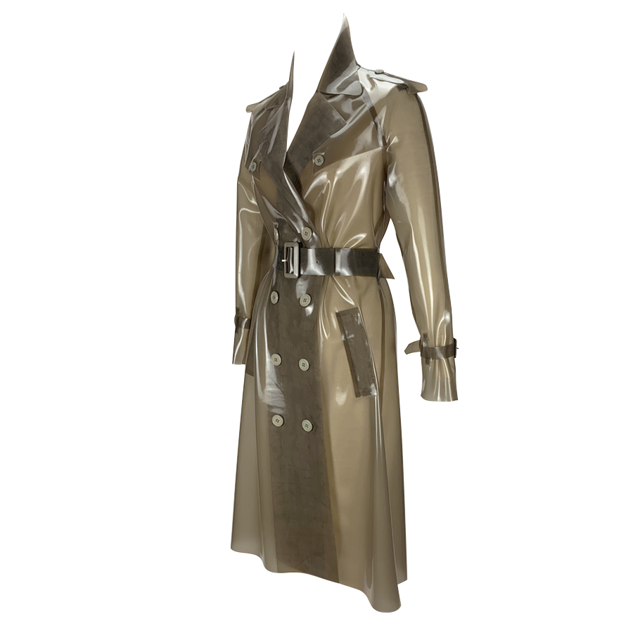 This stunning trench coat has all the features of this classic design - rendered in latex.