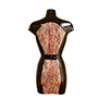 This beautiful minidress has a high neck mandarin shaped collar complemented by a curved design across the chest. This shape highlights a stunning front centre panel of semi transparent lace latex.