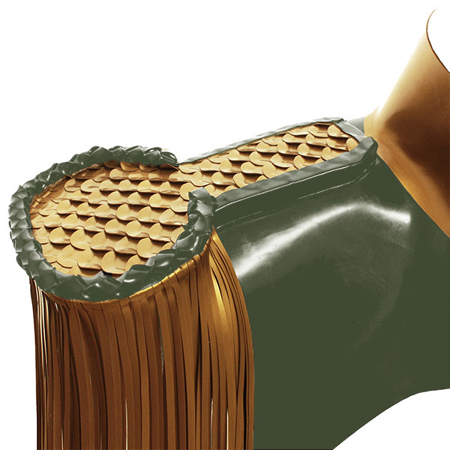 The soft lines are offset by strong shoulders reminiscent of a traditional epaulette jacket.The structured shoulder feature a mini sequin layering and light catching fringing falls dramatically over the upper arm.