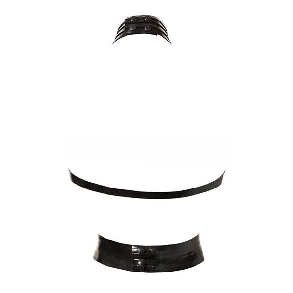 The neck collar and belt fasten with poppers.