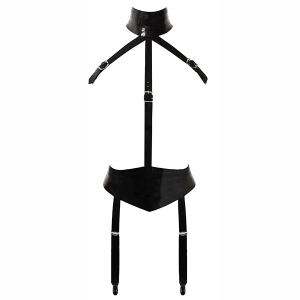 This bewitching playsuit features a provocative neck collar and belt complemented by a restricted style strap design.