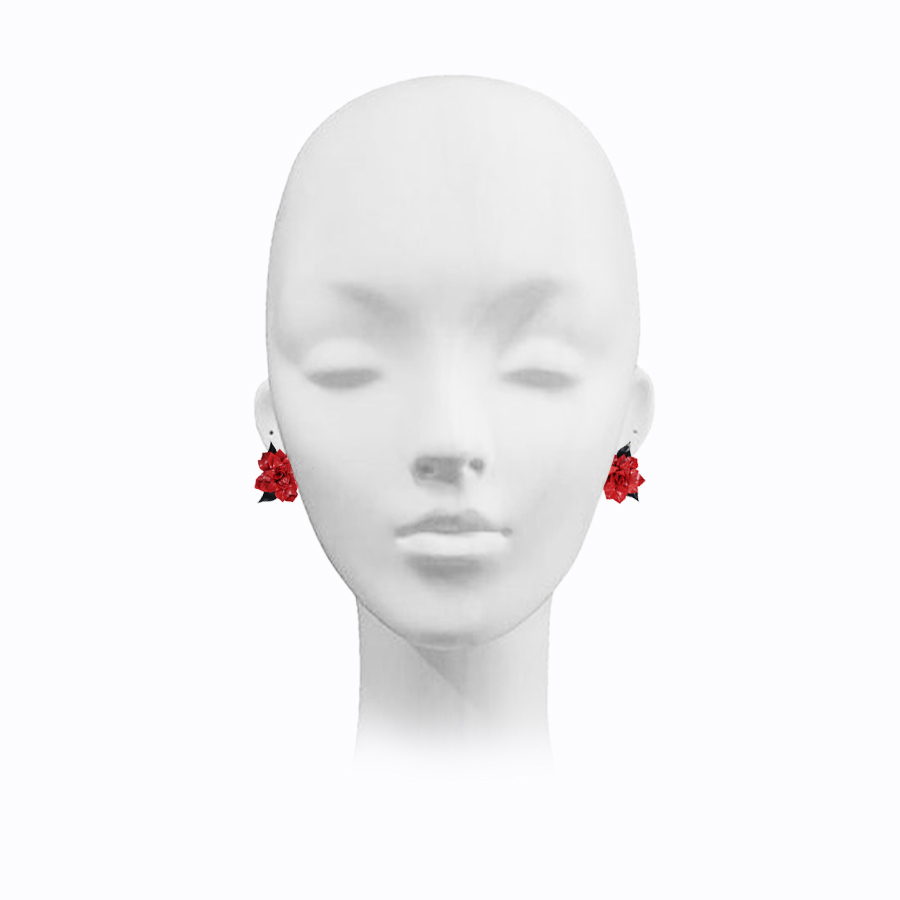 This set of incredibly detailed earrings feature minute individually hand laid petals and leaves set into a beautiful rose design.