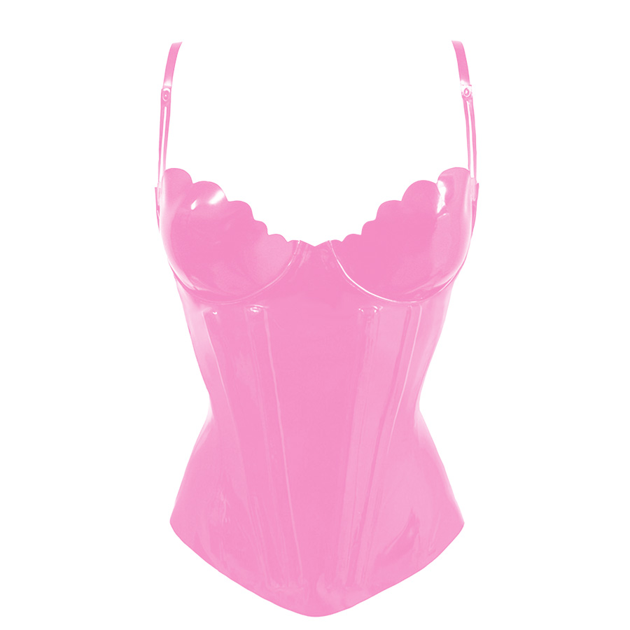 This beautiful corset features a stunning cup design with reinforced scallop shaping and delicate shoulder straps.