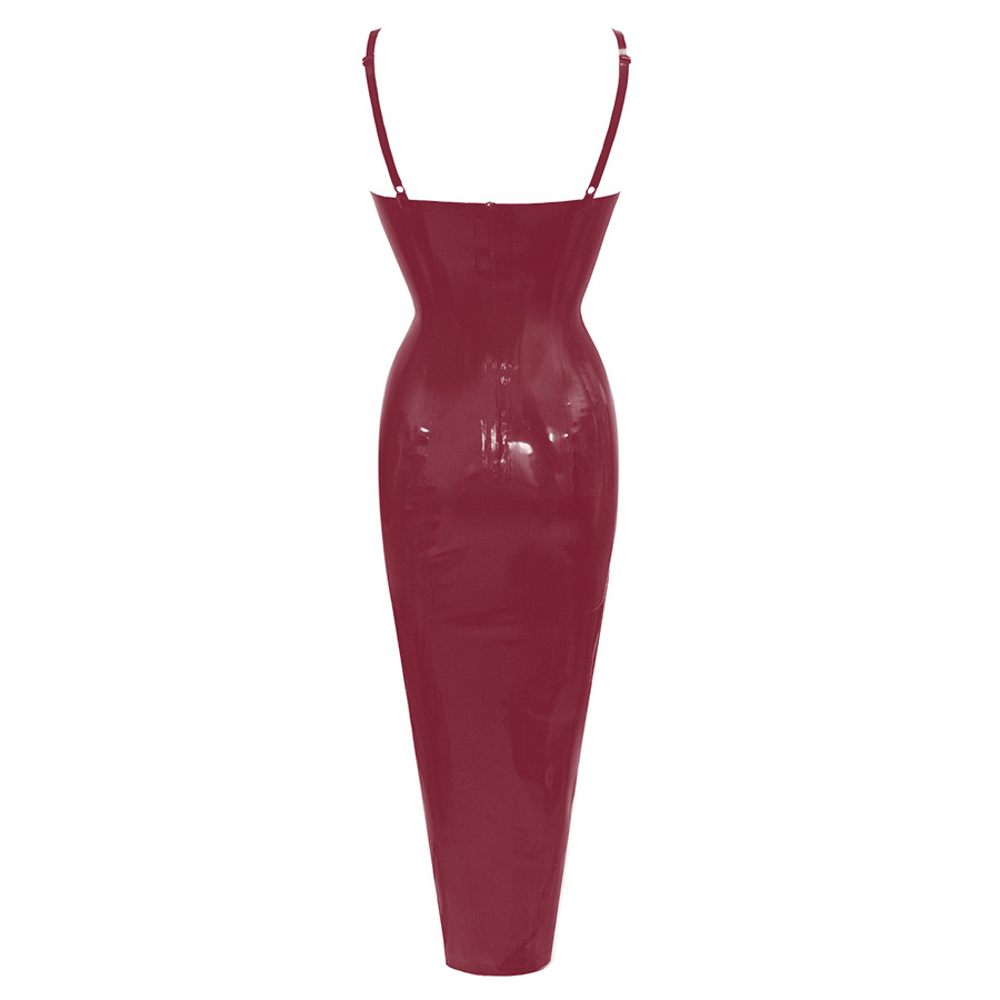 The dress has a gentle curve on the hem and fastens mid back height with a zip.