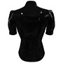 The blouse sits at hip length and fastening is at the centre front via steel poppers.