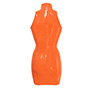 This stunning mini dress with a no shoulder design and a high neck is cut to complement every curve.