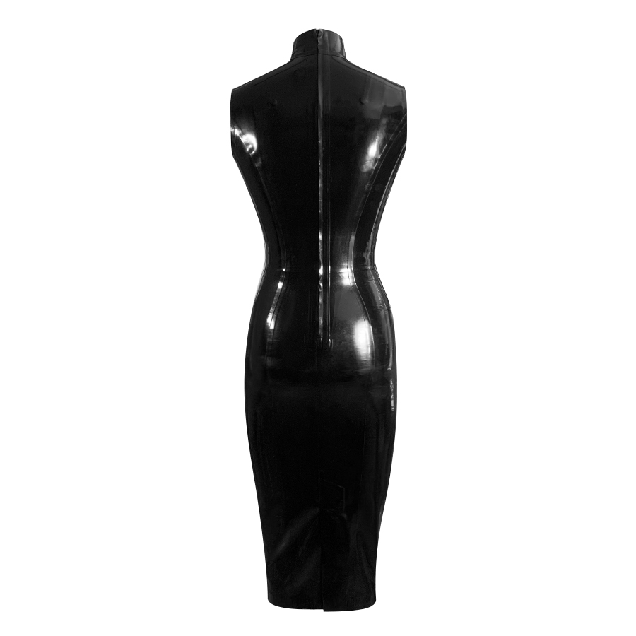 This elegant sleeveless dress features underwired, formed breast shapes alongside a chic full cover design with a high neck.