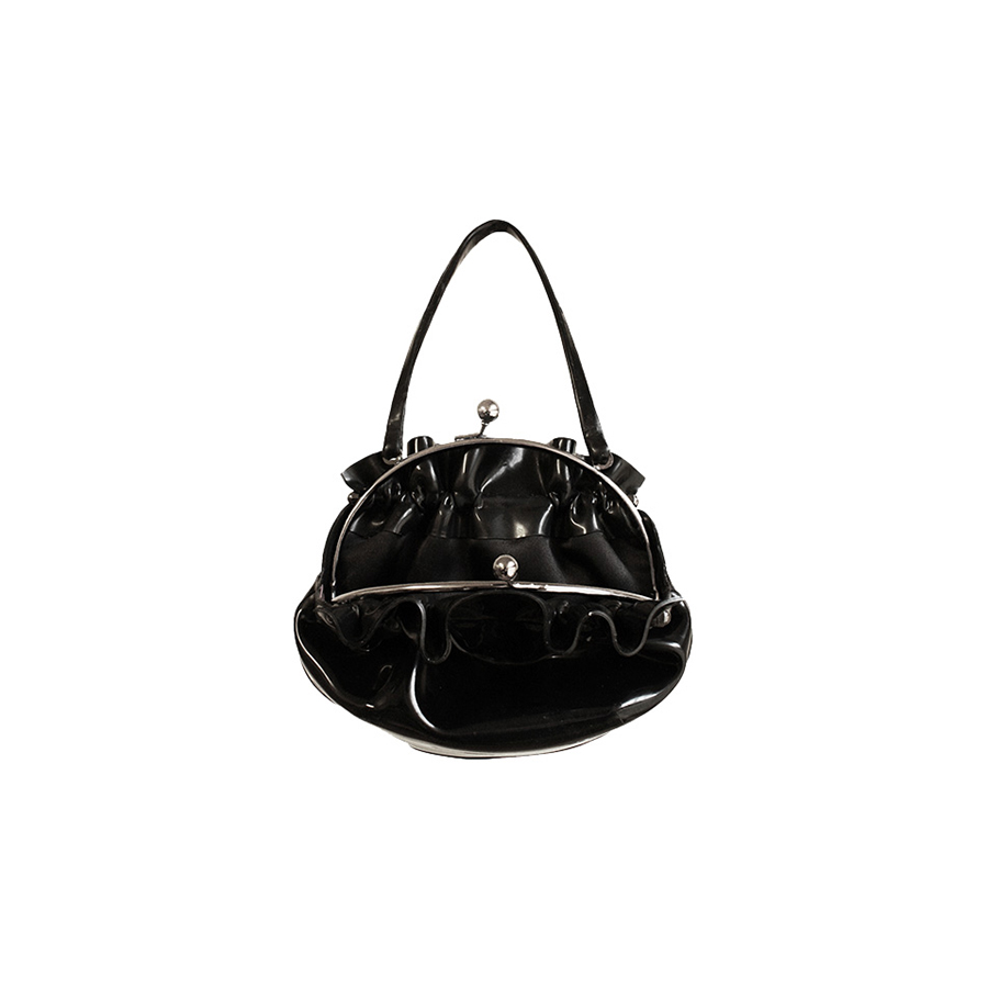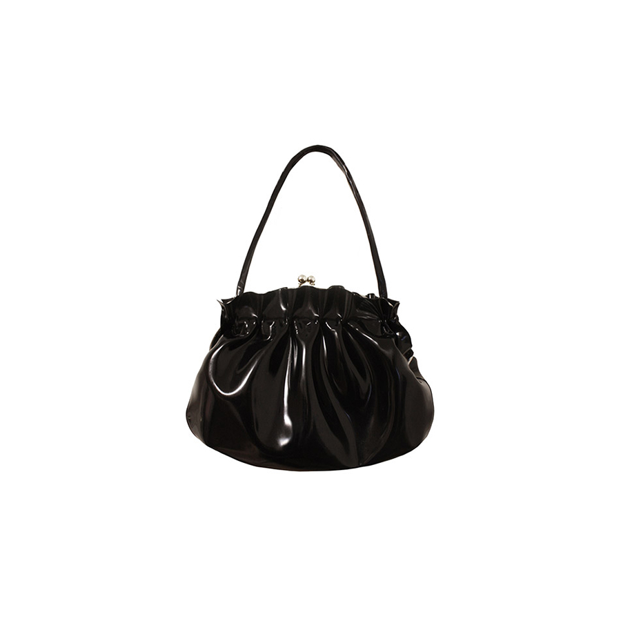 This stunning bag is carefully constructed to form a luxurious gathered effect. The bag is fully lined with satin and closes with a strong silver snap closure.
